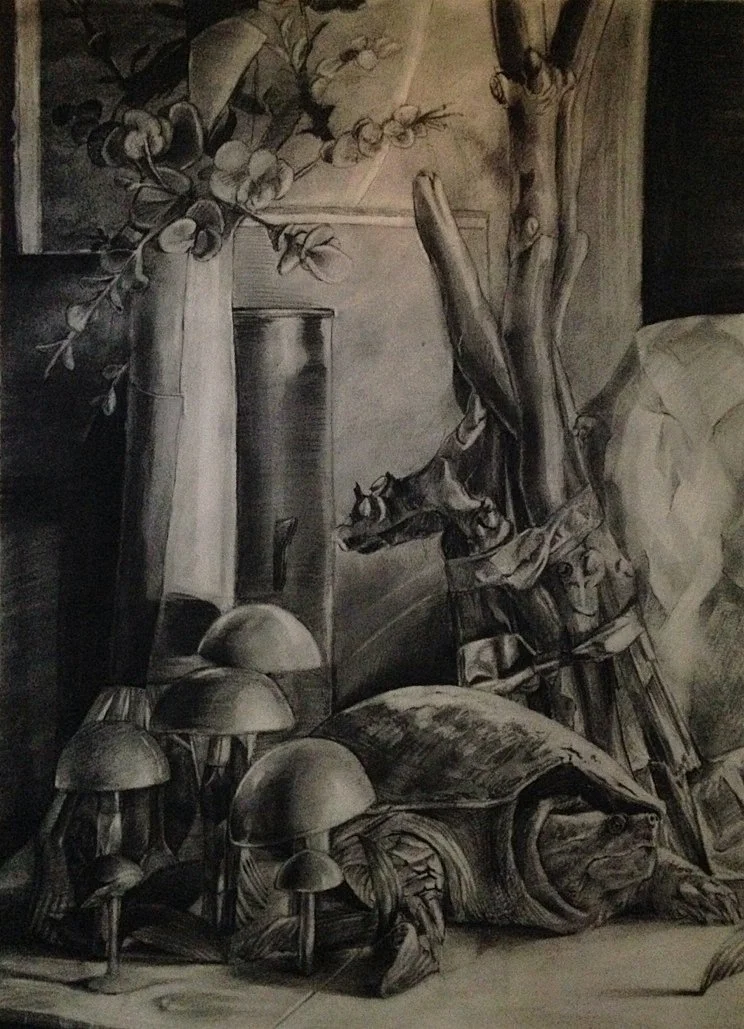 Natural Light Study, charcoal on charcoal paper. (18 x 24”)