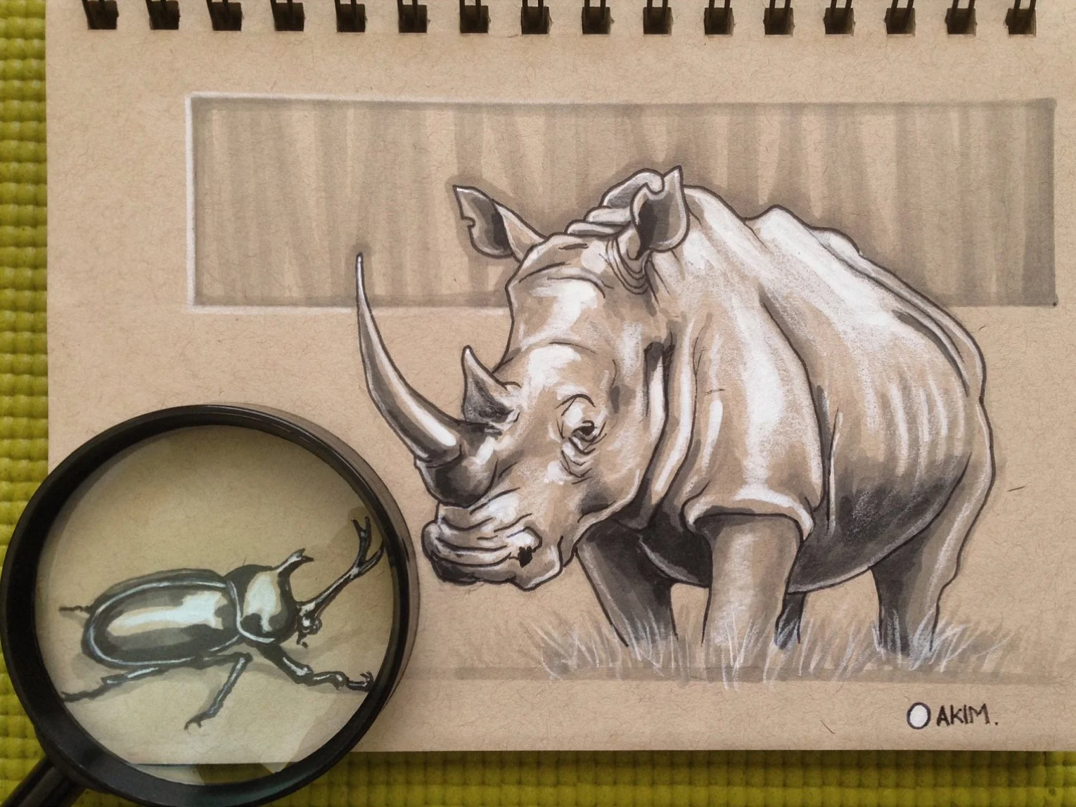 Japanese Rhinoceros Beetle and White Rhinoceros.