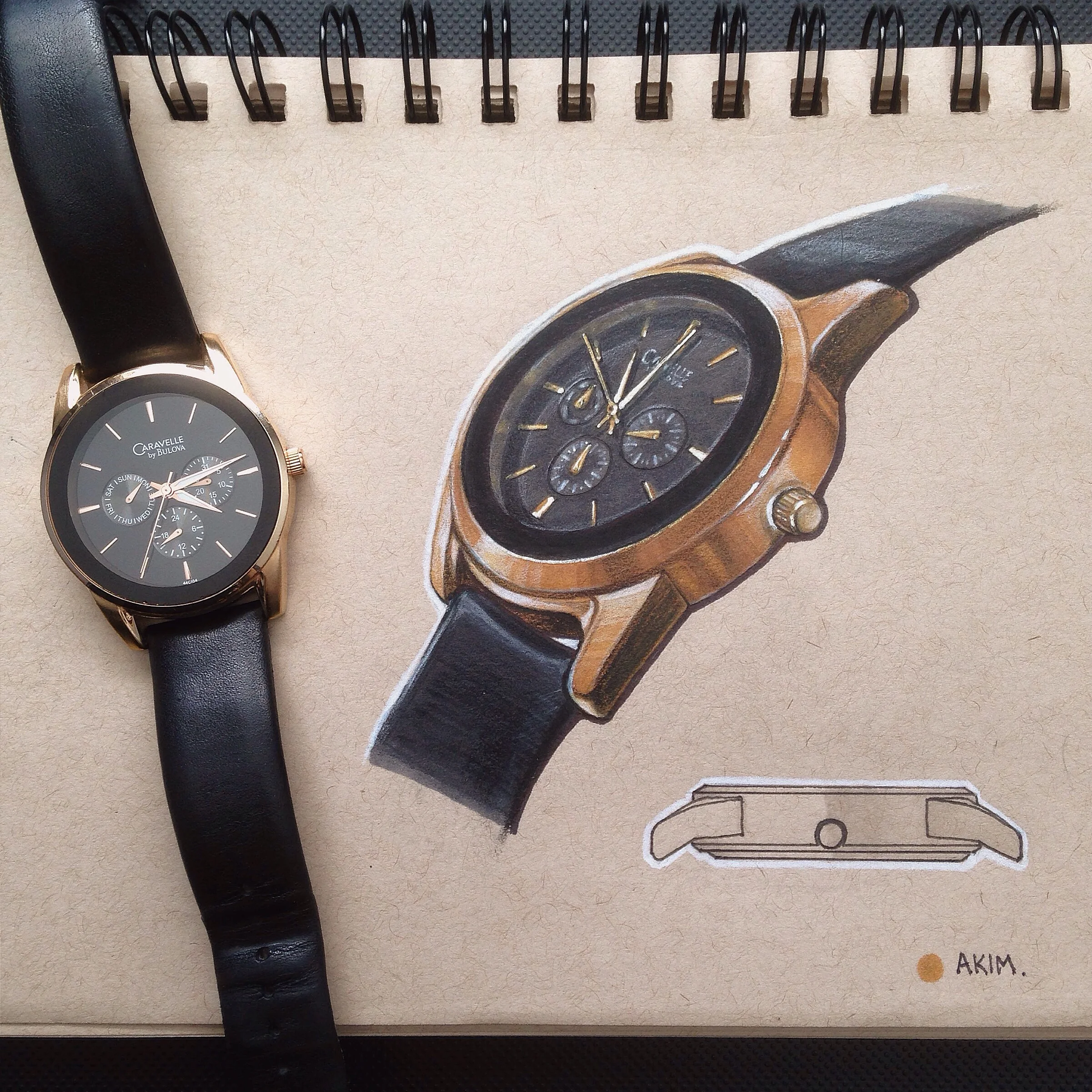 Caravelle by Bulova multifunction leather strap watch.