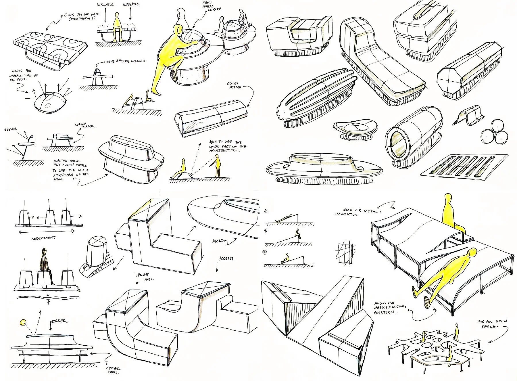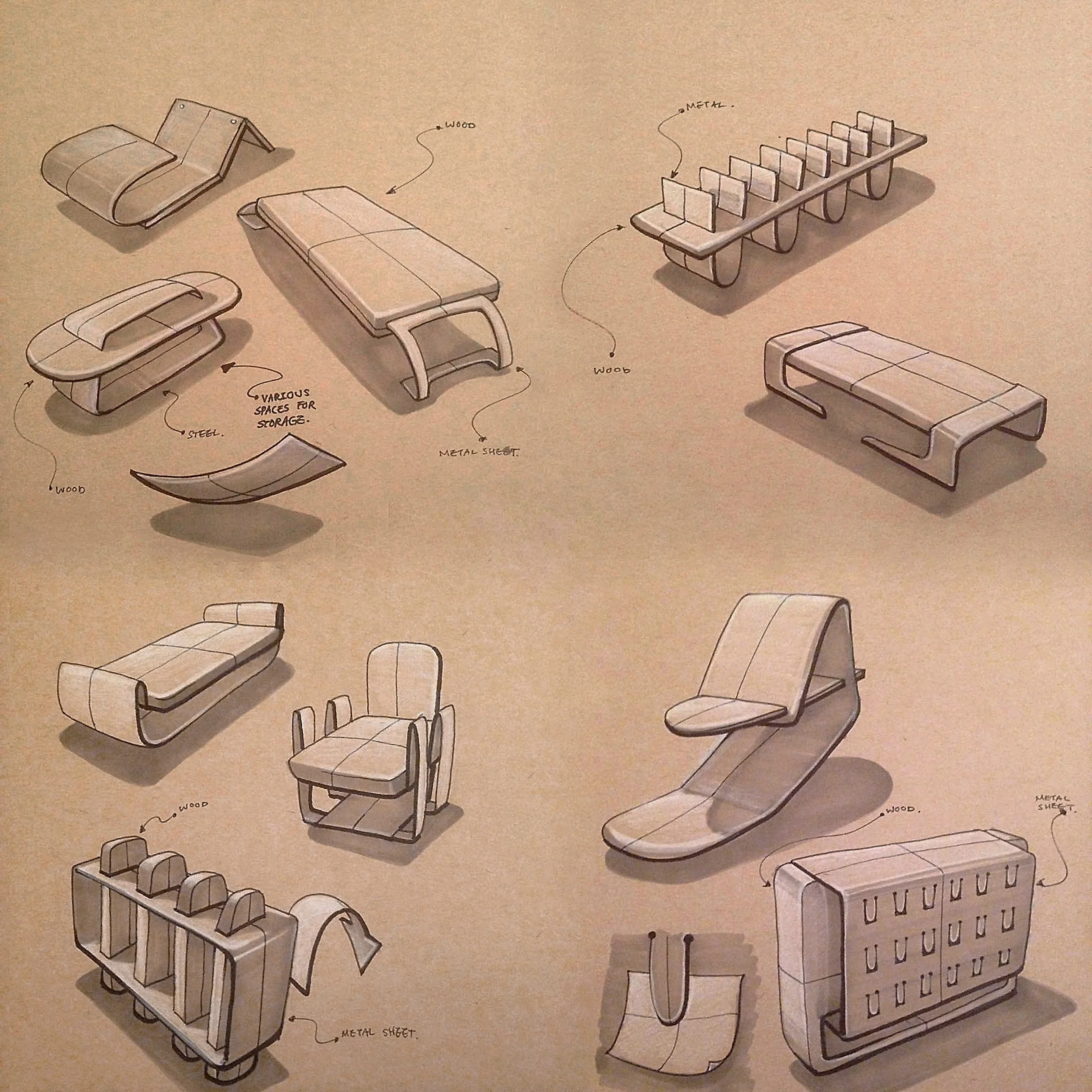 Early sketches for public bench design for Brooklyn Museum.