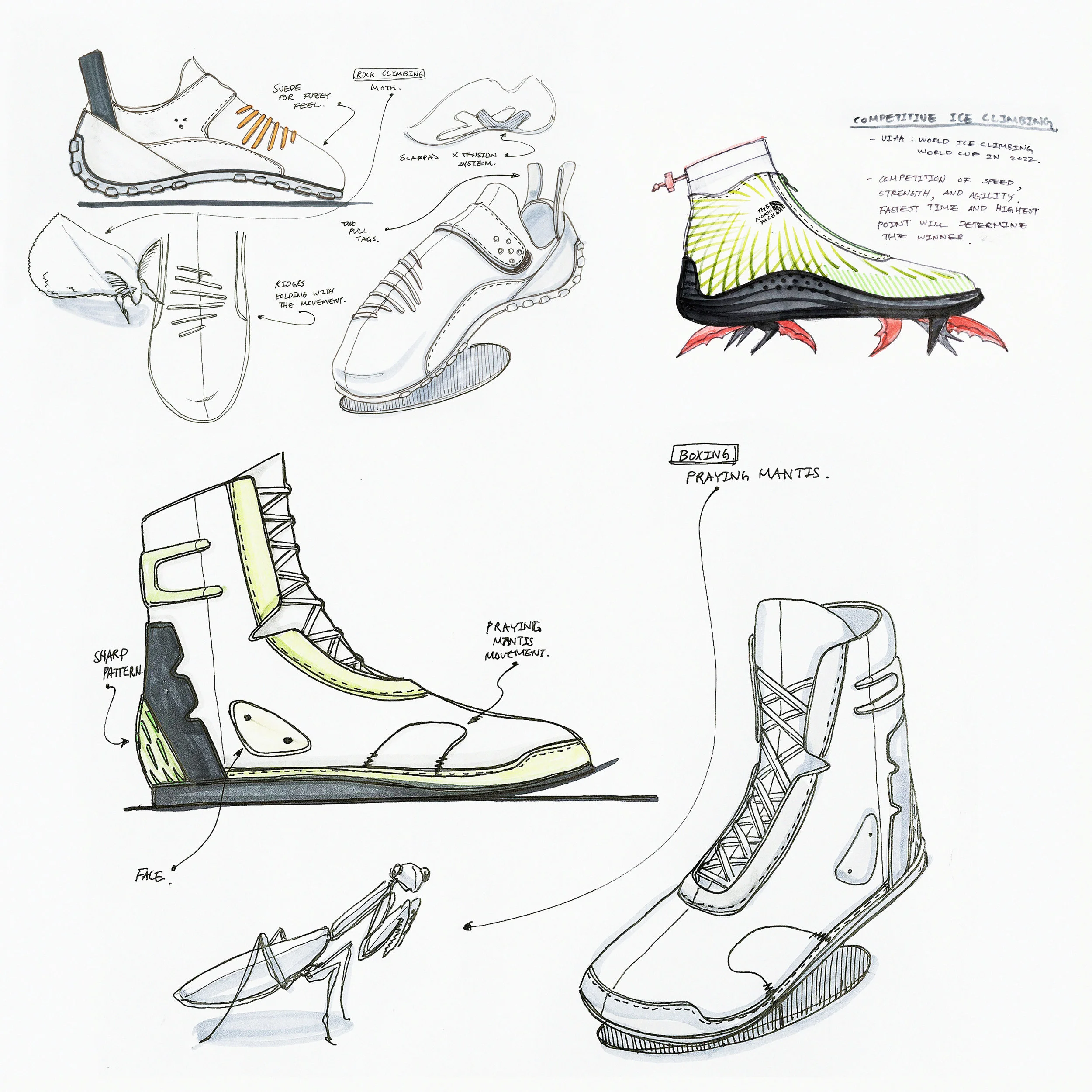 Competitive rock climbing shoe inspired by insect.