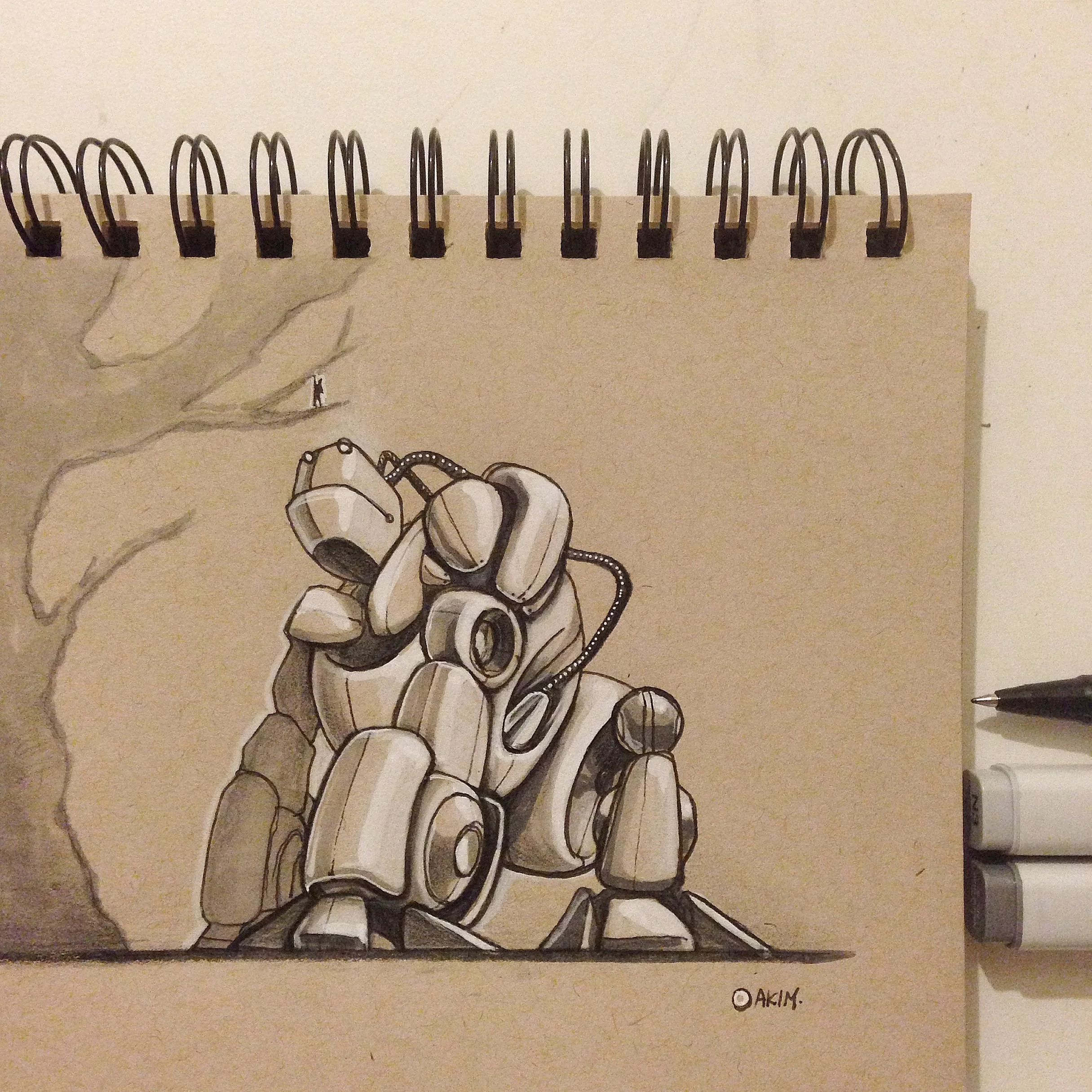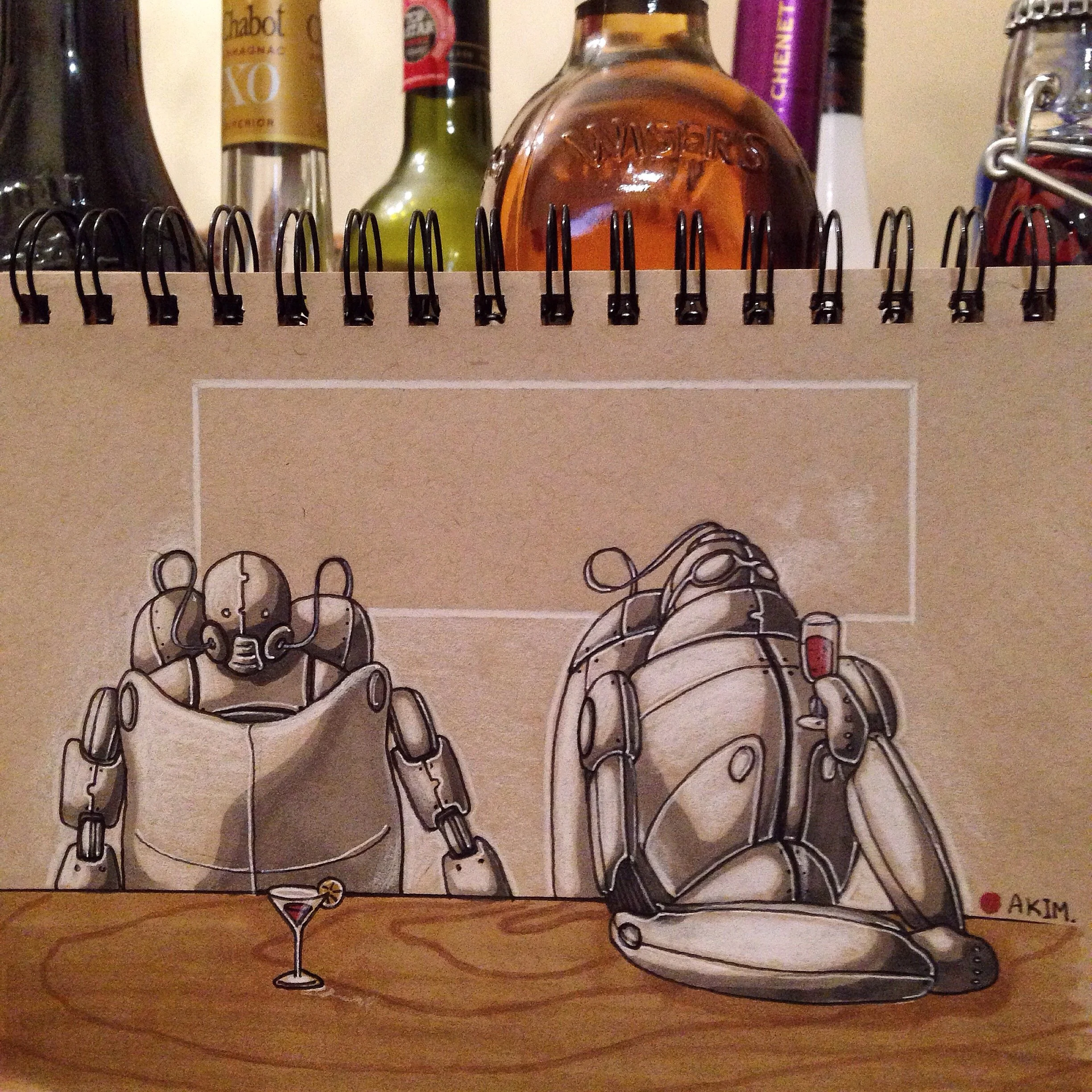 Robot sketch on the plane to Korea.