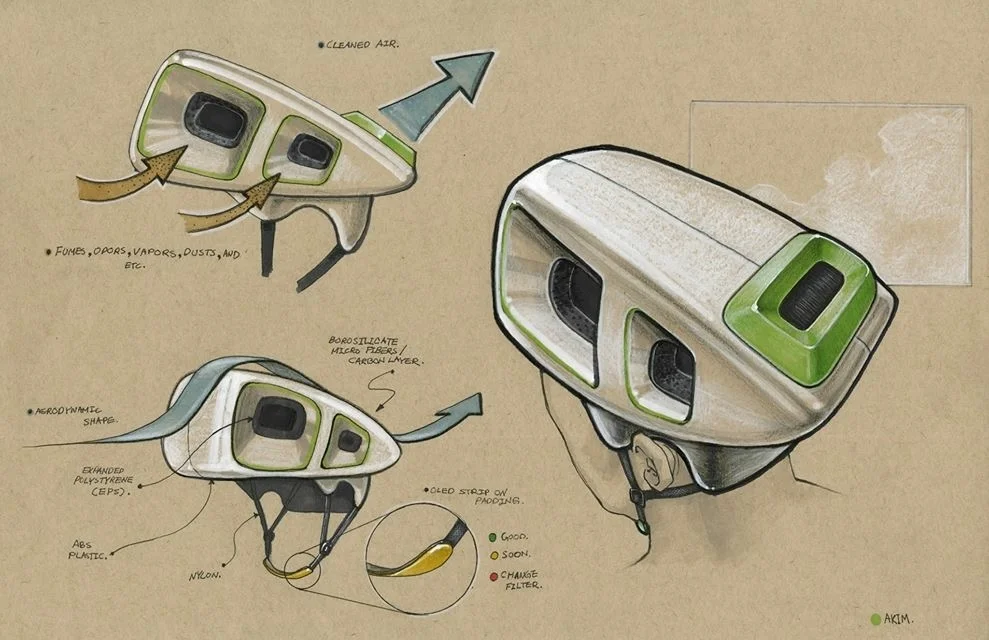 Air purifying bike helmet concept.